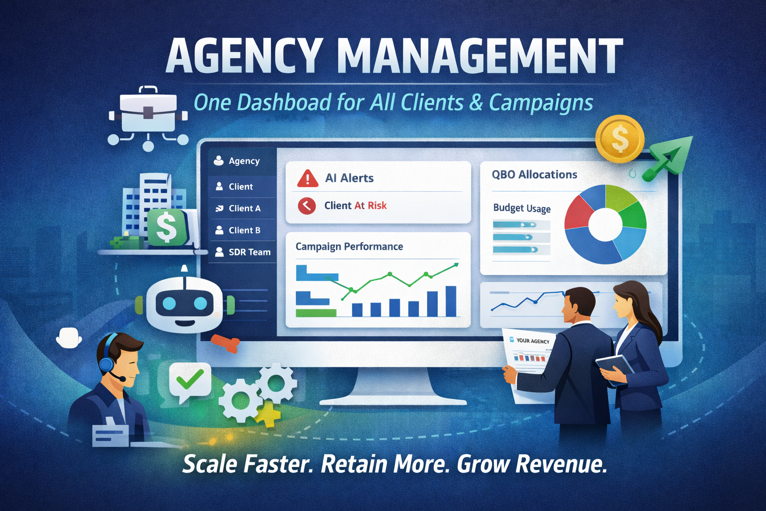 That’s why we’ve released Agency Management — a purpose-built, true multi-tenant workspace that lets agencies manage every client, SDR, campaign, and QBO allocation from a single dashboard.